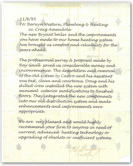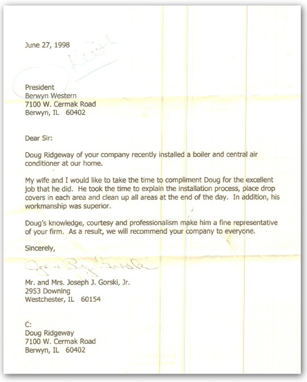 I needed a new furnace & A/C installed and after getting some estimates Berwyn Western was the most reasonable. The installers worked with me to get both units installed and answered my questions concerning the installation. They made sure that I was satisfied with the installations and my questions were answered before they completed the job. I really appreciated the professional job Berwyn Western did installing my Carrier units.